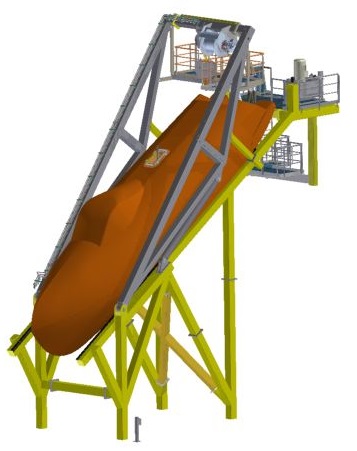 The Norsafe HD-45 davit is specifically designed for safe and efficient launch and retrieval of Norsafe free fall lifeboats. It is intended for long term, reliable operation in harsh and hazardous marine and offshore environments. The davit system is designed in accordance with latest SOLAS and NORSOK R-002 requirements. The davit system is based on a hydraulic driven jib cylinder system and a hydraulic winch operating a single wire on a three part configuration.